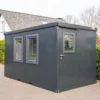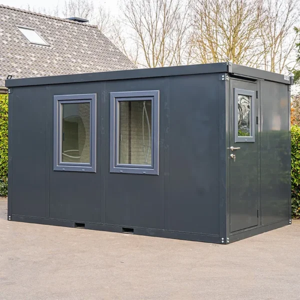 Notre large sélection de Bungalow de chantier est disponible et prête à l’emploi juste après leur montage. Notre expertise est la conception personnalisée et, comme le conteneur bureau est livré en paquet plat, les panneaux peuvent être personnalisés en décidant où placer les panneaux de portes et les fenêtres individuelles. Le conteneur bureau est en gris anthracite RAL 7021.