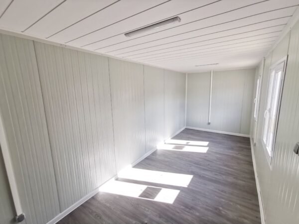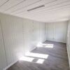Le sol de nos Bungalows de chantier Contain Haus sont en fibrociment. De plus, les profils galvanisés sont placés au sol à 62,5 cm d’intervalle. De cette façon, le sol n’est pas différent de la sensation de satiété que vous ressentirez sur un sol en béton.