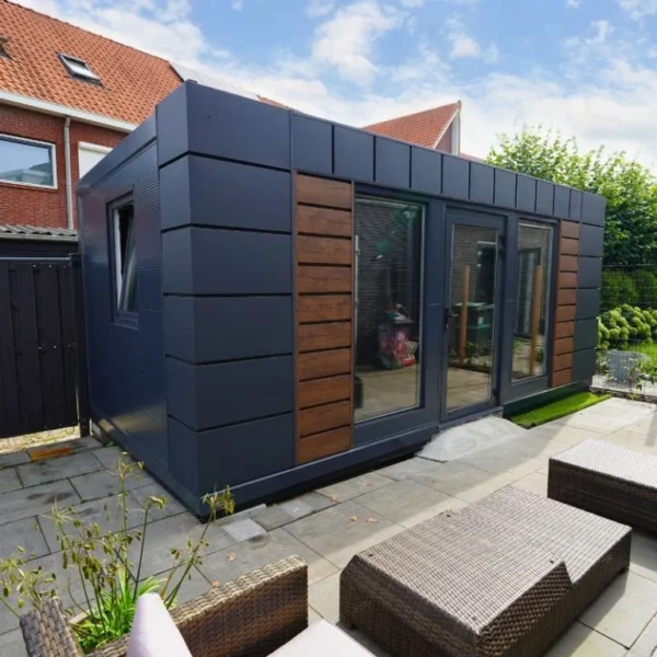 À la recherche d’un bureau conteneur design avec un look moderne? Découvrez notre modèle Bungalow de chantier Stockholm 6×3 parfait pour cette utilisation. Son intérieur spacieux vous permettra d’y faire ce que vous voulez à l’intérieur. Pas besoin de louer un cabinet, commandez-le et déposez-le ou vous voulez ! Vous avez besoin d’une cabane de chantier élégante ou un abri de jardin original ?