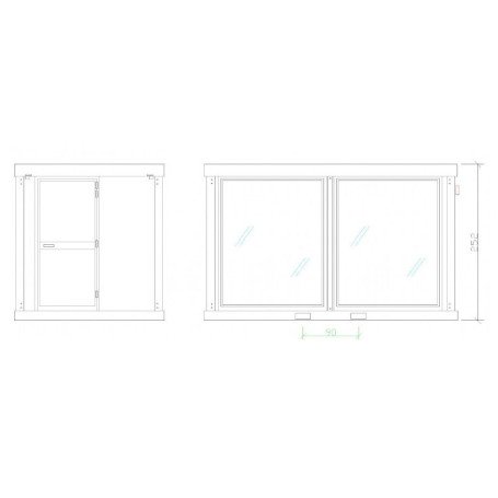 - Fenêtre(s) : 2 baies vitrées fixes dim. 174 x 220 cm, vitrage de sécurité feuilleté clair ép. 4+4 mm