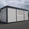 Notre Bungalow Snack 6 mètres est un module équipé pour les activités de snacking. Ce module est destiné à ceux qui souhaitent disposer d’un module Snack pouvant être implanté définitivement ou déplacé fréquemment. Nous pouvons ajouter des portes, des fenêtres, ainsi que le passage de fourches dans le soubassement pour manipulation avec un chariot élévateur équipé de fourches de 250 cm. Nous pouvons aussi l’équiper aux normes alimentaires.