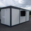 Notre Bungalow Snack 6 mètres est un module avec l’ossature en gris anthracite RAL 7016, une porte et une fenêtre type snack sans vitrage avec volet basculant sur piston à gaz, ainsi que le plancher renforcé en bois-ciment sans revêtement. Il est livré sans installation électrique, afin de vous permettre de le configurer selon votre besoin.
