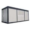 Le bungalow Snack 6 mètres est constitué d’une ossature en acier galvanisé et laqué couleur gris anthracite RAL 7016.