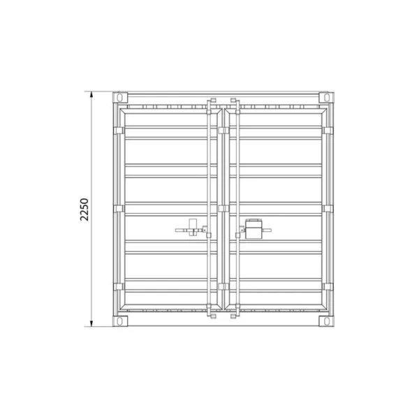 - Manutention : 4 prises sur la toiture pour crochets de levage. Soubassement avec passage de fourches pour chariot élévateur équipé de fourches longues (250cm).