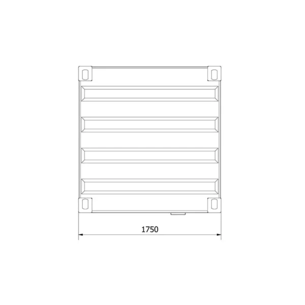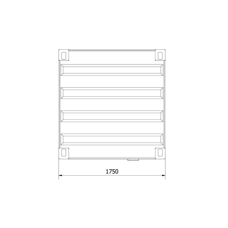- Manutention : 4 prises sur la toiture pour crochets de levage. Soubassement avec passage de fourches pour chariot élévateur équipé de fourches longues (250cm).