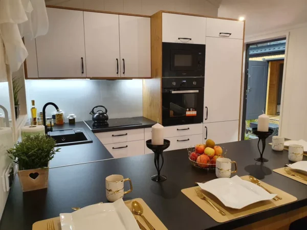 Aménagements intérieurs avec panneaux et revêtements PVC.