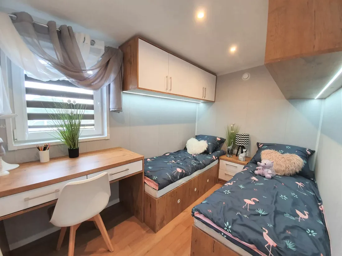 Aménagements intérieurs avec panneaux et revêtements PVC.